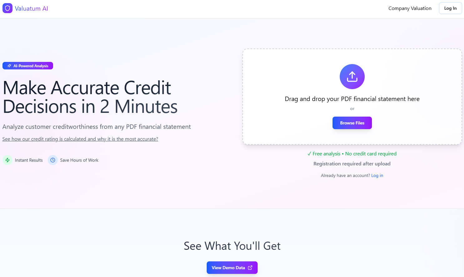 New AI-Powered Free Credit Risk tool for any company in the world launched in November 2025. Valuatum offers a AI-Powered Company Credit Risk Reports and Valuations with fast, professional analysis in just 2 minutes. Simply upload any company’s PDF financial statement – from a short balance sheet and income statement to a 100-page annual report – and get an instant credit risk report or valuation report with customizable forecasts, credit score, default probability and key financial metrics.
